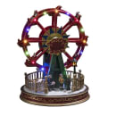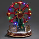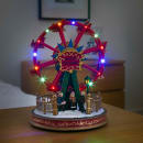 Flot og hyggeligt mekanisk pariserhjul med musik og lys. Julebyen har medfølgende transformer, så du kan sætte den i stikkontakten. Der er også mulighed for at droppe ledningen (medfølger) og sætte 3xAA batterier i (medfølger ikke).