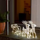 Rensdyrene med kanen er godkendt til udendørs brug. Stil den på terrassefliserne og giv lidt julestemning til havens dyr i den kolde måned.