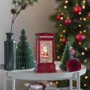 Hyggelig lille telefonboks med julemanden indeni på 9,5x9,5x20 cm som lyser i mørket. Stil den på kommoden, sammen med dine andre juledekorationer. Her vil den stå op pynte rigtig fint i december måned.