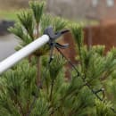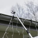 Krogene til tagrender (tilkøb) sættes på enden af teleskoprøret og klipses derefter op i tagrenden hvorefte du kan montere lyskæden i klipsene.