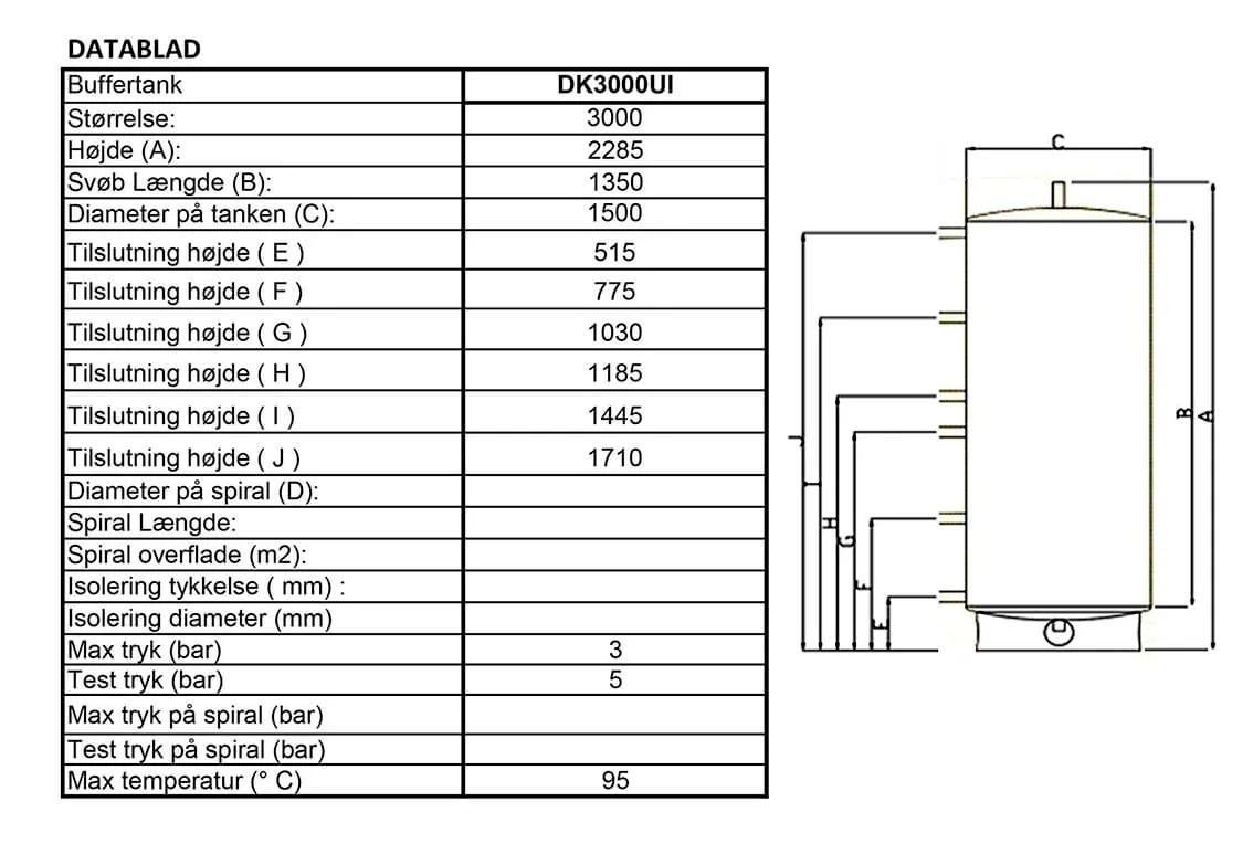 - Kapacitet på 3000 liter, der giver rigelig varmelagring til større systemer