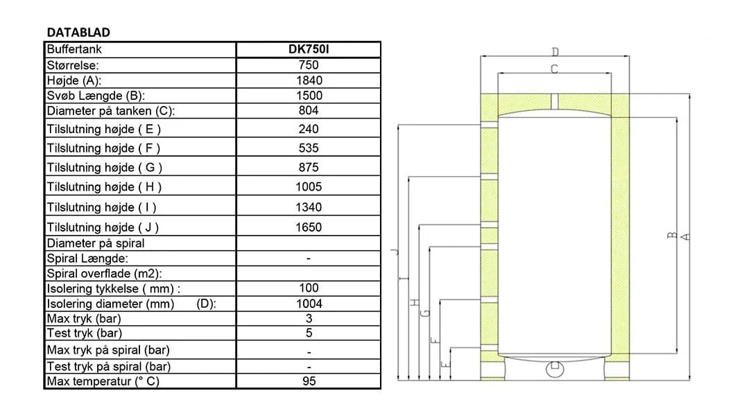 - Kapacitet på 750 liter, der giver rigelig varmelagring til større systemer