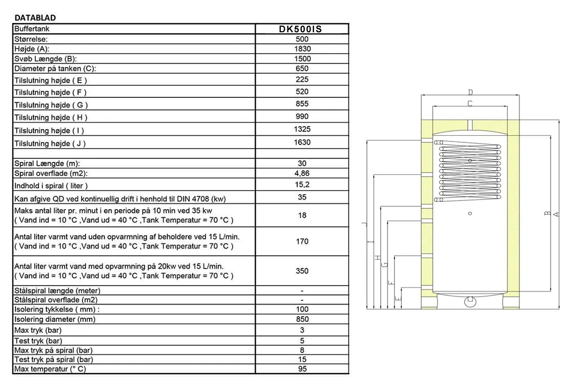- Kapacitet på 500 liter, der giver rigelig varmelagring til større systemer