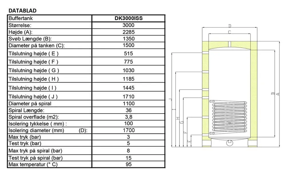 Med Langå 3000 liters buffertank med solspiral får du en robust og effektiv løsning til dit varmesystem. Akkumuleringstanken er skabt til at levere komfort og energibesparelser, uanset om du benytter solvarme, varmepumper eller kedler.