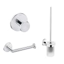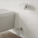 Den diskrete cylinderformede toiletbørste Cana fra Laufen består af børstehoved, stang og en flot rund beholder, som er fremstillet i et matteret glas og fæstnet i et krom vægbeslag.