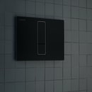Trykpladen har en dybde på kun 8 mm, og er sort med en tynd matkrom kant rundt om trykknapperne, som fint bryder den helt glatte flade. Betjeningspladen er med dobbeltskyl, og monteres nemt og enkelt med kabeltryk og klikkes derefter fast på indbygningscisternen.