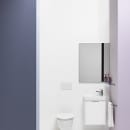 Det væghængte toilet, har et flot æstetisk design, med et helt rent udtryk uden overflødige detaljer, hvilket fuldendes af den skjulte montering, som sker via hullerne til toiletsædet.