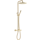 Brusesystemet er fremstillet i massiv messing, som vil patinere smukt ved brug, og brusesystemet vil over tid få et helt unikt udseende.