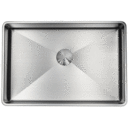 De elegant afrundede hjørner i vaskens kumme flugter perfekt med vaskens yderkant, hvilket resulterer i et harmonisk afstemt design.