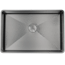 De elegant afrundede hjørner i vaskens kumme flugter perfekt med vaskens yderkant, hvilket resulterer i et harmonisk afstemt design.