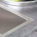 Vasken er fremstillet i 1,2 mm kraftigt rustfrit stål, hvilket sikrer stabilitet og lang levetid. Kuvertbunden leder vandet effektivt mod afløbet, så du undgår vandrester, og de afrundede hjørner gør rengøringen til en leg. Vasken kan både nedfældes, planlimes eller underlimes, så du får frihed til at vælge den løsning, der passer bedst til dit køkken og din stil.