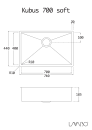 Med Lavabo Kubus 700 Soft får du en køkkenvask, der tilpasser sig dine behov – uanset om du ønsker nedfældning, planlimning eller underlimning. Den kræver et underskab på minimum 800 mm og leveres uden hanehul, så du kan vælge armatur efter din stil.