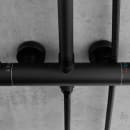 Det sorte brusesæt fra Lavabo er fremstillet i rustfrit stål, som har fået en mat, pulverlakeret overflade, der gør det særligt holdbart.