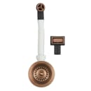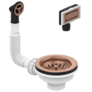 Afløbssæt til Lavabo kompositvaske med enten rundt eller rektangulært overløb, da begge dele medfølger i kobber. Til de rektangulere overløb medfølger en elegant dækplade med logo.