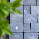 Stenens grå og let patinerede overflade gør den velegnet til både moderne og klassiske uderum. Lyset ligger plant med overfladen og blander sig naturligt med omgivelserne. Den lille sorte ring omkring spottet tilfører en diskret detalje, der løfter udtrykket – uden at stjæle opmærksomheden. Lyset kommer bedst til sin ret, når det spiller op mod kanter, mure eller grøn beplantning.
