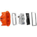 Den tekniske monteringsramme anvendes på de nye Fuga Air Slim dåser til indmuring og forfra. Monteringsrammen hjælper med at holde stikkontakten eller afbryderen fast, så den ikke risikerer at gå løs hvis der bliver hevet for hårdt i ledningen. Slim design rammerne passer på den tekniske monteringsramme.