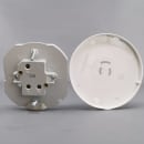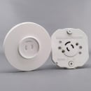 Rund lampestikkontakt der monteres i FUGA dåser for indmuring, indstøbning, forfradåser eller udvendig underlag. Opbygges af indsats med afdækning samt FUGA ramme. Plast uden synlige skruer, da afdækning klemmes på soklen.