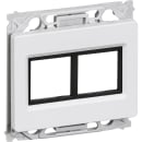 Dette LK Opus 66 dataudtag har 2 montagehuller til konnektorer. Det ubenyttede hul kan afblændes med en blændprop. Montageramme skal tilkøbes.