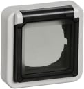 Anvendes til installationer i vådrum samt til udendørs-installationer i boliger. Kan monteres med alle FUGA 1M indsatser, afbrydere, stikkontakter, dataudtag type 1, lysdæmpere (undtagen drejelysdæmpere og PIR).