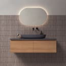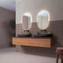 Det smukke Blokhus spejl fra Loevschall har et svævende udtryk, som understøttes på fineste vis af det varme backlight, som tilfører badeværelset en hyggelig og varm stemning.