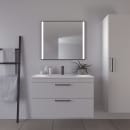 De brede lyskanter i spejlfladen har en behagelig varm hvid farvetone, som giver dig det perfekte lys til tiden du bruger foran spejlet på badeværelset.