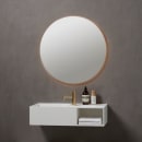 Flot, bagbelyst rundt spejl, der giver et flot spil på væggen om omkring spejlet. Spejlet har en Ra-værdi over 90, hvilket sikrer en god farvegengivelse. Spejlet skal tændes som en almindelig lampe via en lyskontakt.