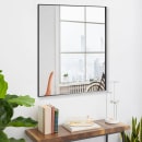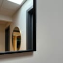 Det 4 mm tykke glas er dækket af en sikkerhedsfilm, så du undgår glassplinter, hvis uheldet skulle være ude. Den tynde, sorte ramme sækker ikke bare spejlet ind, men samler indretningen og skaber visuel ro. Det er detaljer som disse, der gør en forskel, når du skal finde det helt rigtige spejl.
