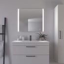De brede lyskanter i spejlfladen har en behagelig varm hvid farvetone, som giver dig det perfekte lys til tiden du bruger foran spejlet.