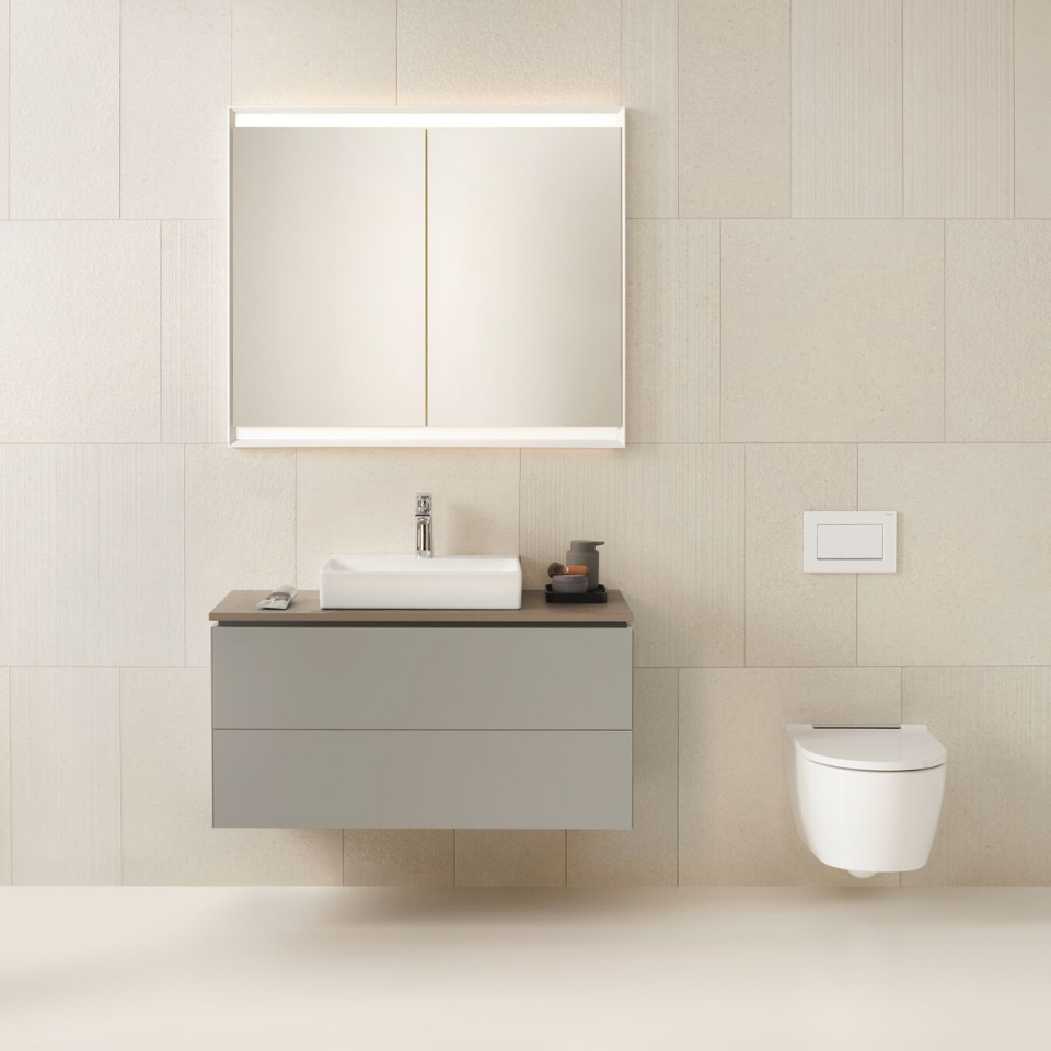 Opdag Geberit badeværelsesmøbler – et komplet sortiment af underskabe, højskabe, spejlskabe og reoler, der kan kombineres efter dine ønsker. Med Mix & Match-systemet tilpasser du nemt indretningen, uanset rummets størrelse. Vælg mellem flere serier, materialer og farver, der tåler fugt og er lette at rengøre. Skab et harmonisk og funktionelt badeværelse med kvalitet og komfort i fokus.