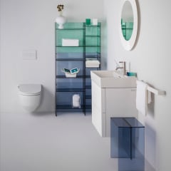 Italienske Kartell har gennem 60 år revolutioneret brugen af plastik i deres møbel- og indretningsdesign, og schweiziske Laufen har i over 125 år raffineret brugen af keramik til deres sanitetsprodukter. Tilsammen har de skabt designserien Kartell Laufen, som giver dig sanitet og badeværelsesinventar i en ny og unik stil med overraskende finesser.