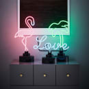 Spred ekstra kærlighed med dette "Love" neonskilt. Lampen er udstyret med en fast LED-belysning på 6W, der sikrer et varm/hvidt energieffektivt neon lys. Den leveres med en transformer på 12V DC, og har en strømafbryder placeret på basen for nem betjening.