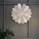 Stjernen er fremstillet i papir og plast, hvilket giver et let og luftigt udtryk. Med en diameter på 45 cm og en dybde på 17 cm fylder den smukt uden at dominere rummet. Den medfølgende klare ledning på 3,5 meter og den indbyggede afbryder gør det nemt at placere og tænde lyset, så du kan skabe præcis den stemning, du ønsker til hverdag og fest.