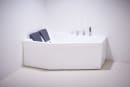 Det asymmetriske design gør det nemmere at finde plads til et luksus spabad i et mindre badeværelse, da den er væsentligt smallere i fodenden.