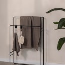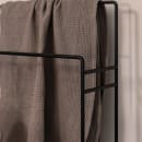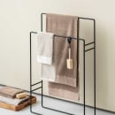 Delaya fra Metallbude er et unikt og moderne blikfang på badeværelset. Den fritstående håndklædeholder er fremstillet i et rundt design i stål, som efterfølgende har fået en sort pulverlakering i en fin struktur.