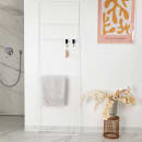 Det giver plads til både tørring af håndklæder, men også moderne opbevaring af eksempelvis badebørste, vaskeklud eller jutehandske, som med fordel kan hænges op med de smukke S-kroge for et fuldendt og gennemført udtryk.