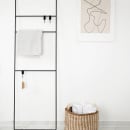 Det giver plads til både tørring af håndklæder, men også moderne opbevaring af eksempelvis badebørste, vaskeklud eller jutehandske, som med fordel kan hænges op med de smukke S-kroge for et fuldendt og gennemført udtryk.