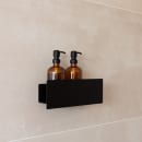 Den minimalistiske og stilrene brusehylde Shea fra Metallbude er fremstillet i rustfrit aluminium, og derefter belagt med en pulverlakeret sort nuance i en fin struktur.