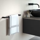 Det minimalistiske designsprog træder tydeligt frem på Vana håndklædestangen fra Metallbude.