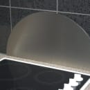 Buet stænkplade fremstillet i børstet rustfrit stål til anvendelse ved komfur eller vask. Monteringen foregår med beslag eller ved limning med lodrette baner af klar silikone bagpå pladen, så ventilationen er sikret.