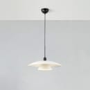Millinge pendel fra Markslöjd. Sort mat metal og skærm i hvid mat metal. 1,5m sort pvc kabel. Monteres med krog. 1xE27, max 40W. Lyskilde medfølger ikke.