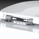 Sædet er med soft close, der giver en langsom, forsigtig lukning af sæde samt låg, og de rustfrie beslag har lift-off, så hele sædet let kan løftes af toilettet ved rengøring for et mere hygiejnisk toilet.