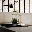 Dette køkkenarmatur med udtræk i børstet messing er skabt til dig, der ønsker både funktionalitet og et smukt udtryk i køkkenet. Den svingbare L-tud og udtrækstud gør det let at skylle grøntsager, fylde gryder eller rengøre vasken – alt sammen med en smidig og let betjening.