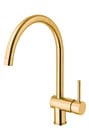 Den børstede gyldne overflade og minimalistiske formgivning gør armaturet til et naturligt blikfang i ethvert køkken. Med den svingbare C-tud og den lette 1-grebs betjening får du både fleksibilitet og komfort i hverdagen.