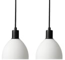 Fint pendelsæt i opal glas og sort fatning. Passer super godt i køkkenet. Der er 2 stk. i sættet.