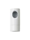 Et minimalistisk lampeophæng som består af en hvid metalanordning som skrues på loftet, hvor din ledning (stof eller plastik) kan køres ind, og monteres i.