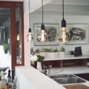 Retro metalfatning med 2,5 meter stofledning, som giver et industrielt look og kan både bruges med en dekorativ stor pære i, eller til at hænge en lampe eller skærm i.