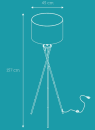 Du kan vælge mellem flere farver af denne smukke gulvlampe, så der er rig mulighed for at finde en, der passer med din indretning. Vær opmærksom på, at den hvide stofskærm vil synes råhvid, hvis den placeres op af en helt hvid væg.