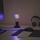 Bordlampe, E27-fatning. Produktegenskaber: Armaturhus materiale: metal og glas. Tekstil kabel. Produktfordele: Iøjnefaldende lampedesign med LED i neonfarver. Bæredygtig løsning takket være udskiftelige lyskilder. Inline-switch på kablet. OSRAM lyskilde medfølger. Anvendelsesområder: Indendørs anvendelse. Korridorer, indgangsområder, trappeopgange, stuer, soveværelser, kældre. Sikkerhedsanvisninger: Det fleksible kabel eller ledning på dette armatur kan ikke udskiftes; hvis ledningen er beskadiget, skal armaturet destrueres.. For at reducere risikoen for kvælning skal de fleksible ledninger, der er forbundet til dette armatur, være effektivt fastgjort til væggen, hvis ledningerne er inden for rækkevidde..