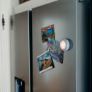 - Magnetisk bagside og klæbeplade: Monter den på væggen, sengegavlen eller tag den med rundt