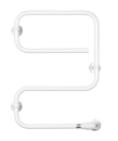 Håndklædetørrerens let buede rør er fremstillet i rustfrit stål, og fastgøres nemt til underlaget med de medfølgende sving- og flytbare vægbeslag.